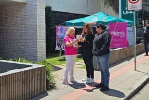 O time cor-de-rosa da Rede Feminina de Combate ao Câncer de Criciúma (RFCC) e a equipe da URC Diagnósticos uniram forças, na manhã desta segunda-feira (20) para uma mobilização alusiva ao Outubro Rosa nas ruas em torno da clínica, no Centro de Criciúma.